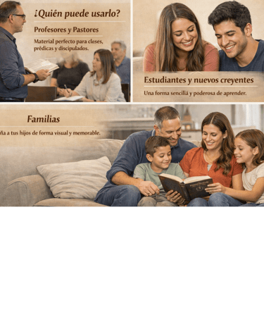 Recibirás una biblioteca espiritual completa, compuesta por estudios visuales, devocionales y explicaciones versículo por versículo de los principales libros de la Biblia: